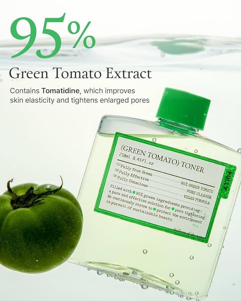 - الخصائص الرئيسيةالمكون الأساسي: يحتوي التونر على خلاصة الطماطم الخضراء (Green Tomato Extract). تتميز هذه الخلاصة بتركيز عالٍ من مادة "التانين" (Tannin)، وهي مادة قابضة طبيعية تساعد على شد المسام وتقليل حجمها بشكل ملحوظ. كما أنها غنية بمركبات "فيتامين ب" (Vitamin B) ومضادات الأكسدة التي تحمي البشرة من التلف.